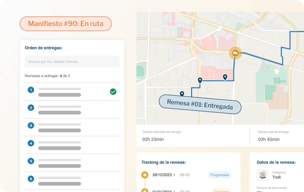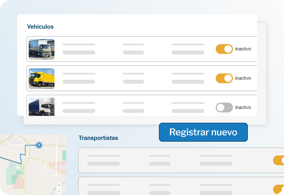 Realizar la gestión completa de tu flota es más fácil que nunca. Registra tu flota, asigna manifiestos y organiza remesas de forma rápida y sencilla. Todo lo que necesitas para una administración eficiente y centralizada de tu flota, sin complicaciones.
