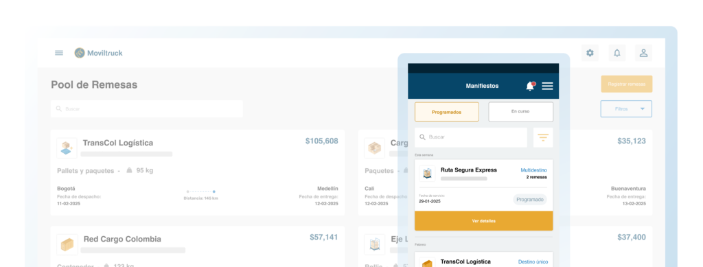Con Moviltruck, haz seguimiento en tiempo real de cada remesa en tránsito, controla cada envío de principio a fin y mantente siempre informado.